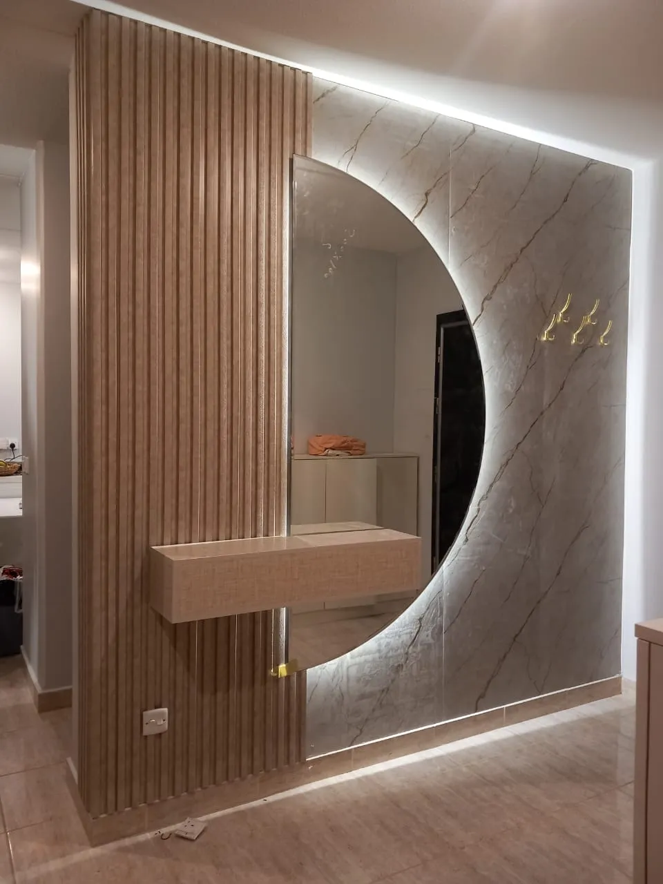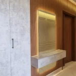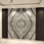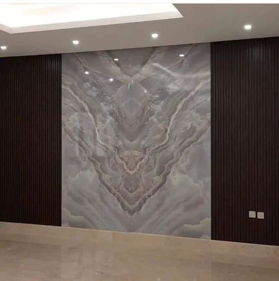 الإضاءة المخفية تُبرز تفاصيل العروق وتعطي عمقًا بصريًا أنيقًا للجدار.
